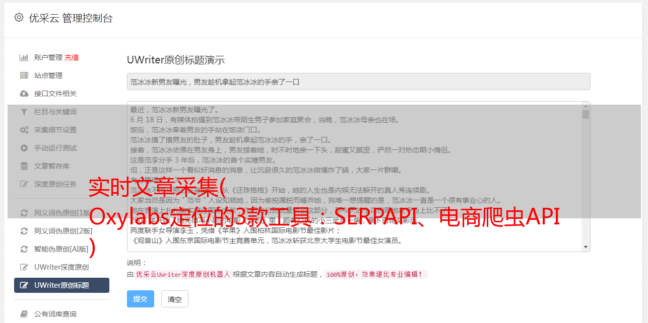 实时文章采集( Oxylabs定位的3款工具:SERPAPI、电商爬虫API )