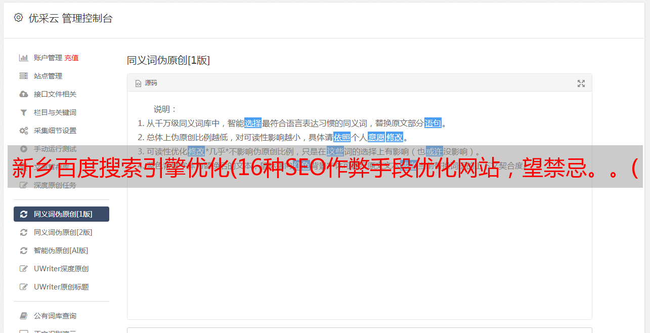 优采云 发布时间: 2022-01-08 16:02新乡百度搜索引擎优化(16种SEO作弊手段优化网站,望禁忌。。(组图))