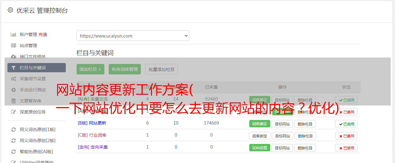 优采云 发布时间: 2022-01-08 16:11网站内容更新工作方案(