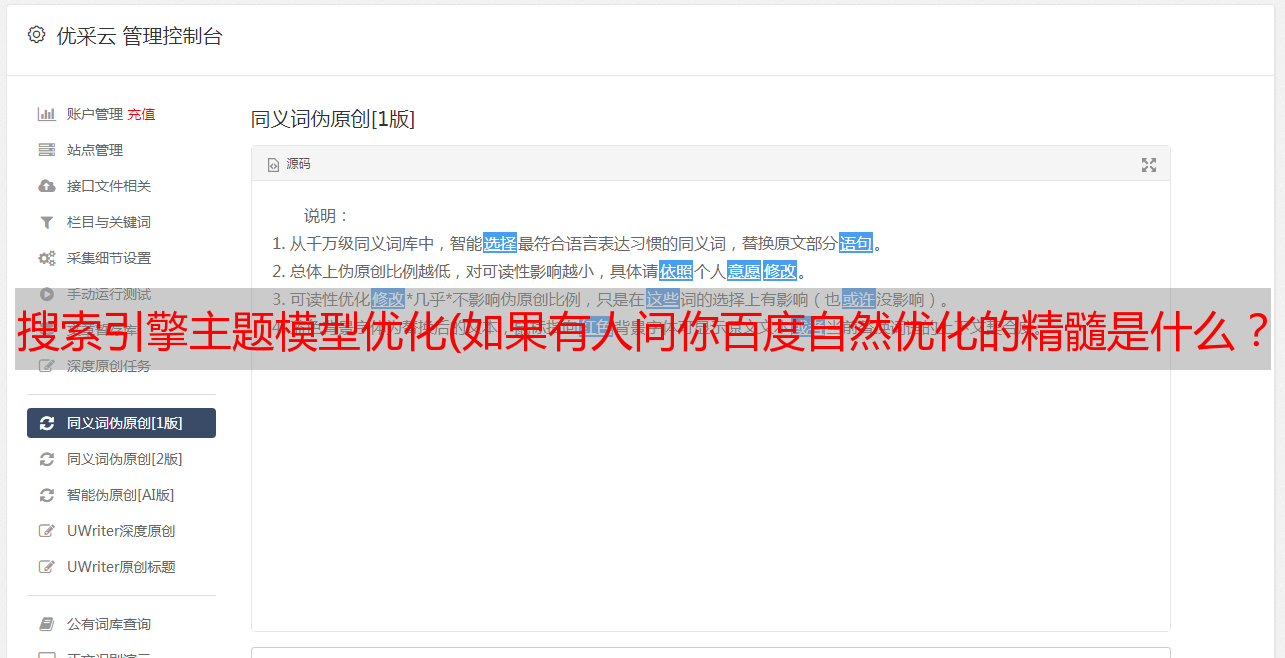 优采云 发布时间: 2022-01-08 16:17搜索引擎主题模型优化(如果有人问你百度自然优化的精髓是什么?(图))