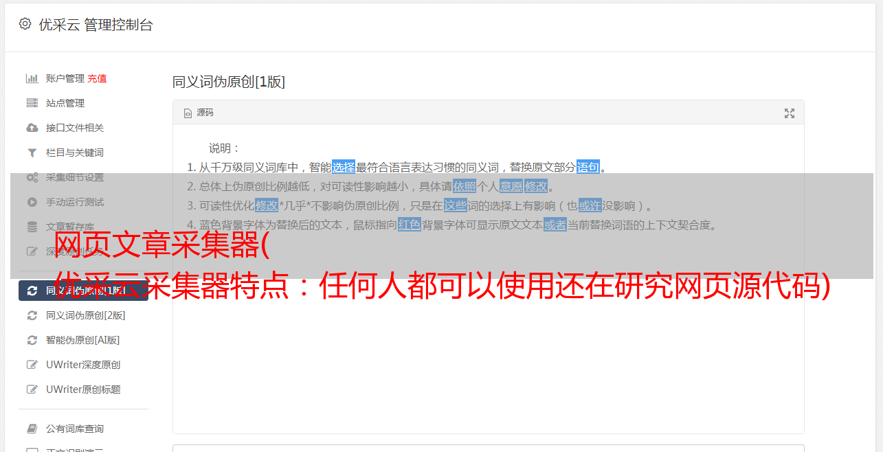优采云采集器特点:任何人都可以使用还在研究网页源代码)