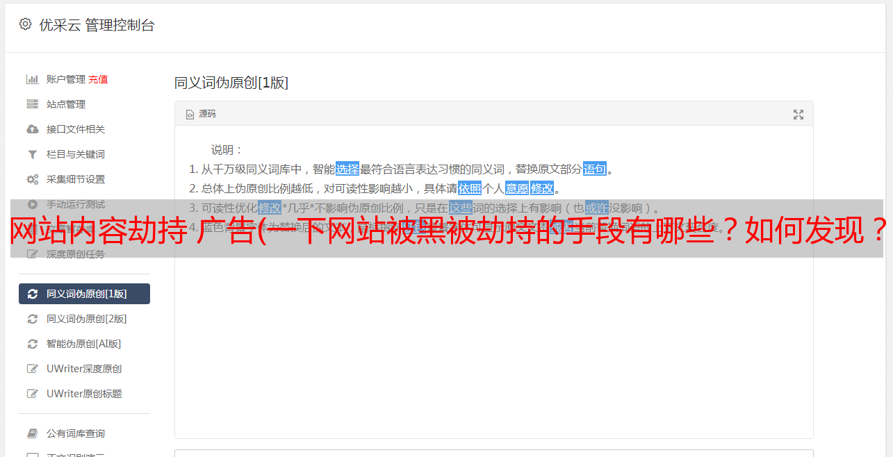 优采云 发布时间: 2022-01-08 20:15网站内容劫持 广告(一下网站被黑被劫持的手段有哪些?如何发现?