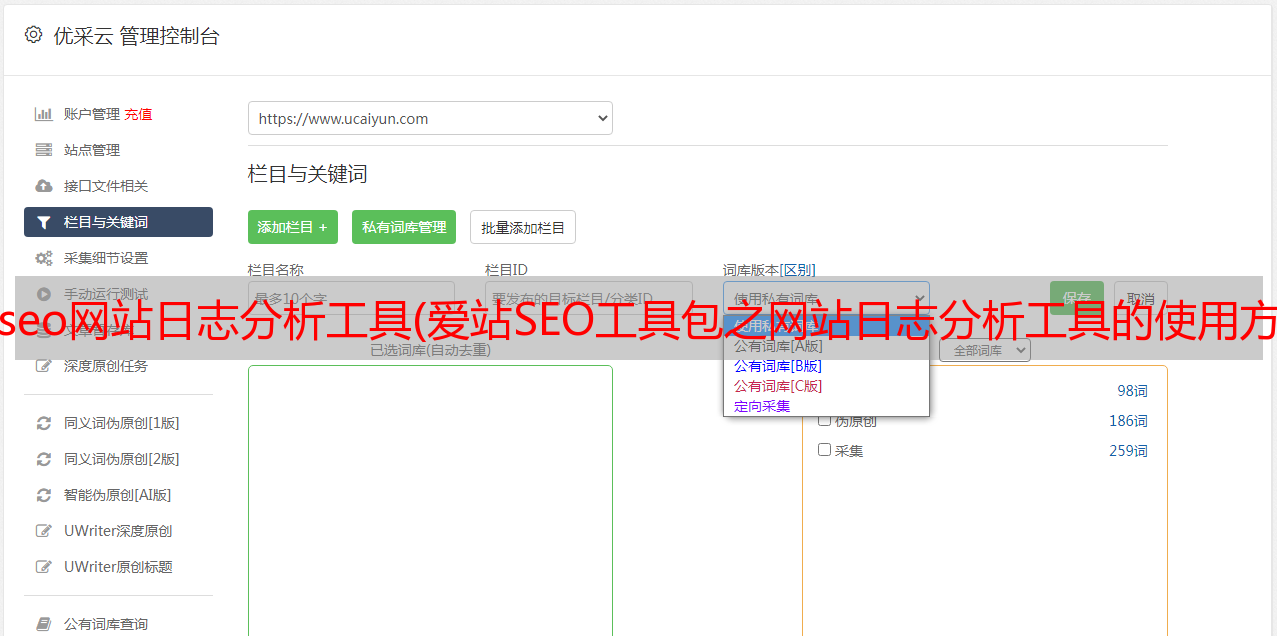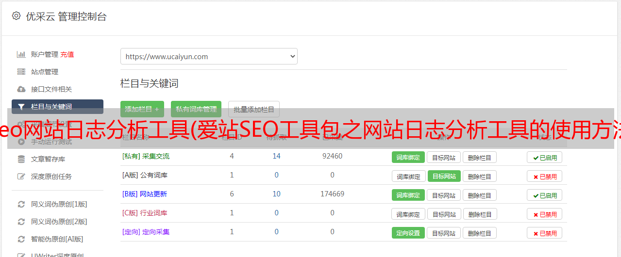 优采云 发布时间: 2022-01-08 20:16seo网站日志分析工具(爱站SEO工具包之网站日志分析工具的使用方法【】