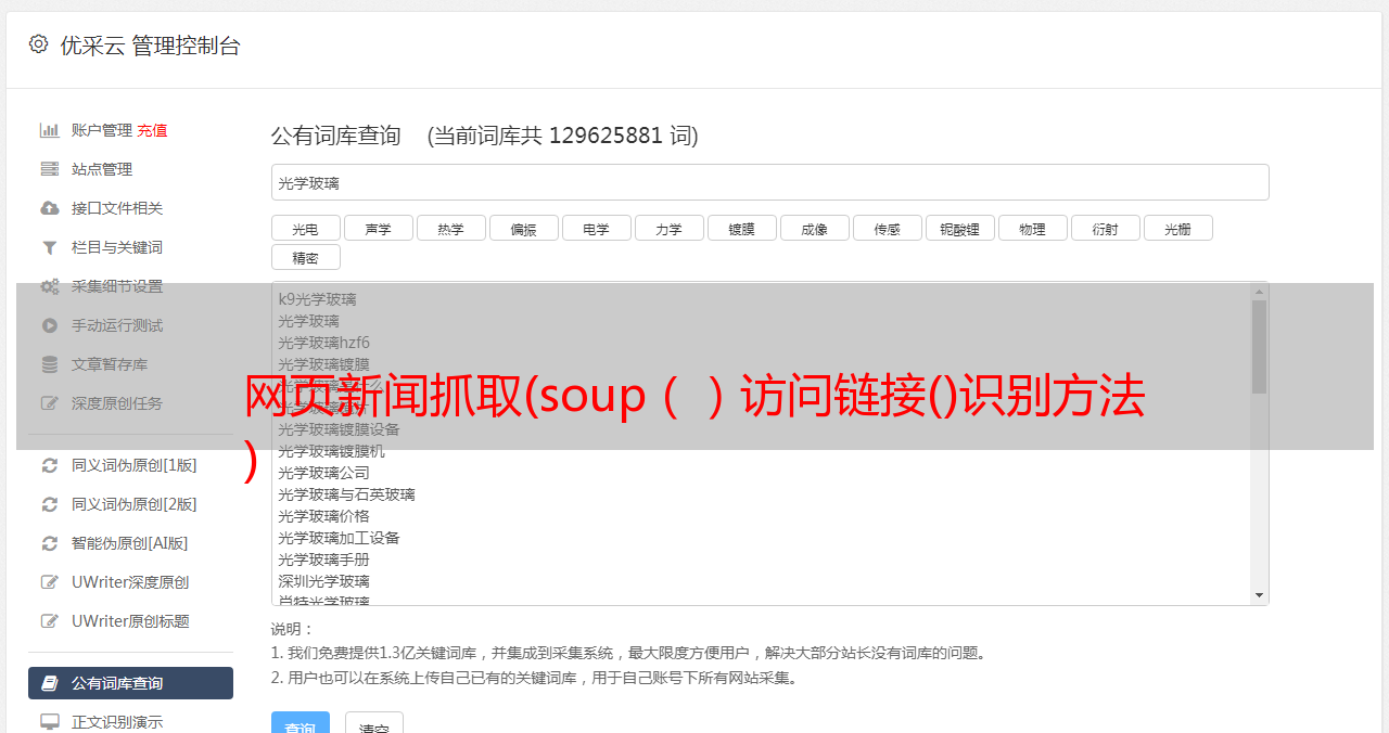 优采云 发布时间: 2022-01-08 22:14网页新闻抓取(soup()访问链接()识别方法