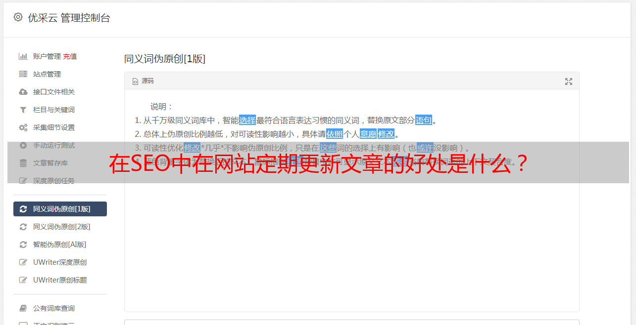 优采云 发布时间: 2021-04-24 02:36在SEO中在网站定期更新文章的好处是什么?