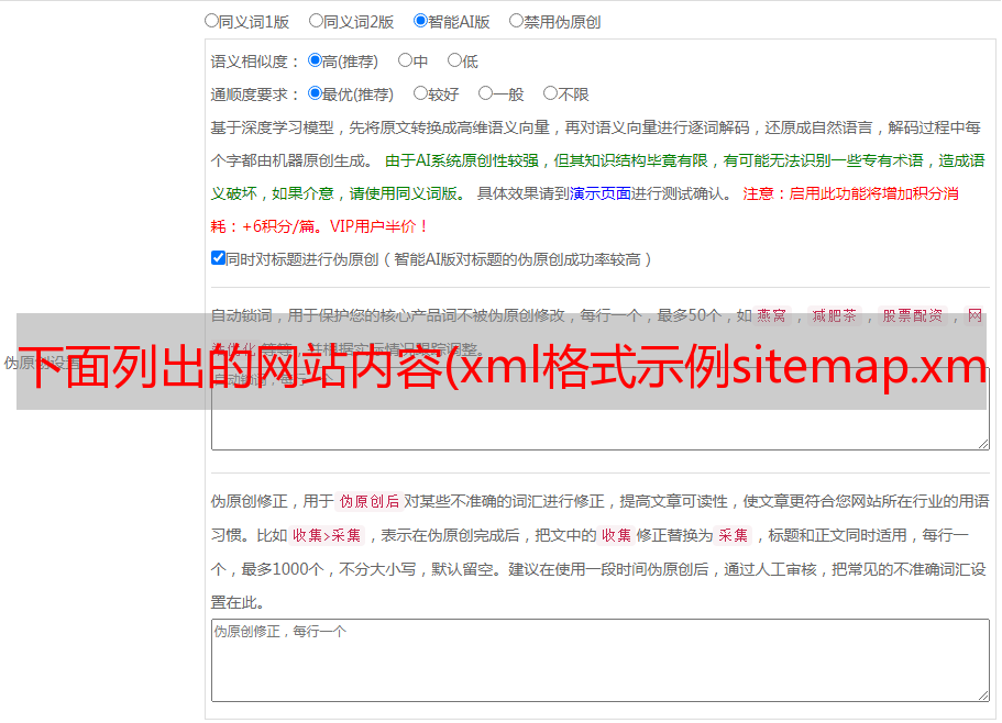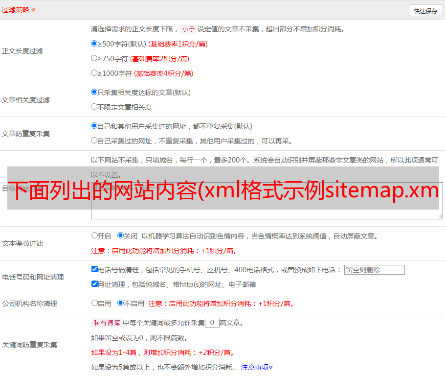 下面列出的网站内容(xml格式示例sitemap.xml.)