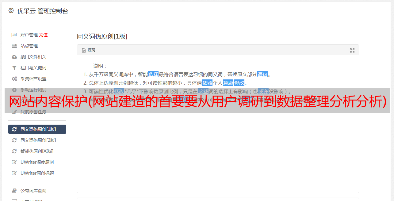 优采云 发布时间: 2022-01-09 13:04网站内容保护(网站建造的首要要从用户调研到数据整理分析分析)