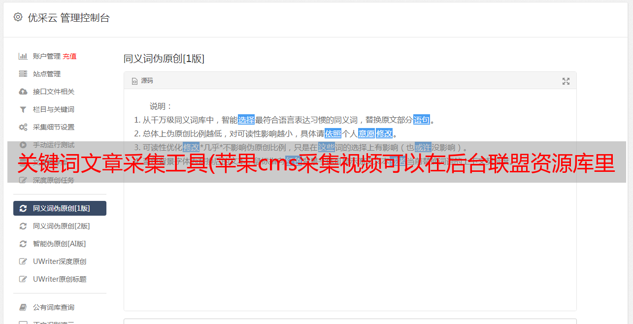 优采云 发布时间: 2022-01-09 16:06关键词文章采集工具(苹果cms采集视频可以在后台联盟资源库里直接设置采集)