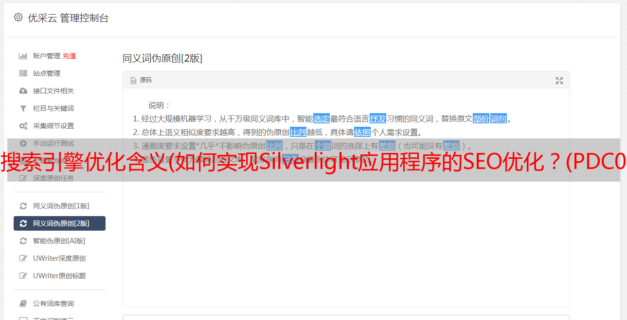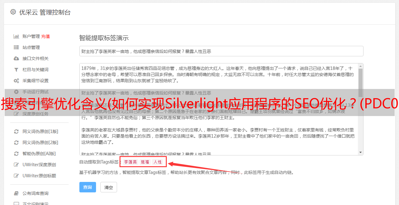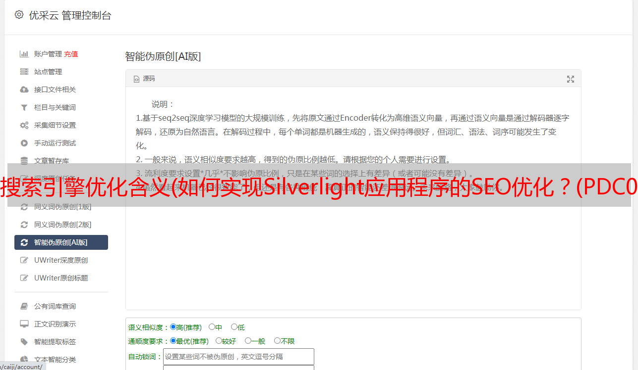 优采云 发布时间: 2022-01-09 18:04搜索引擎优化含义(如何实现Silverlight应用程序的SEO优化?(PDC09Talk))