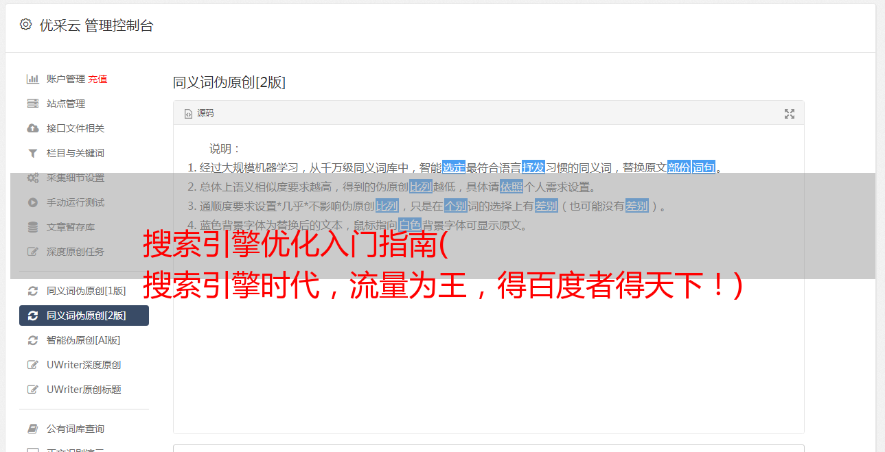 SEO实际上是一种经验技术,源于市场需求。网站有成千上万的行业。SEO没有标准化的操作流程。一切都是基于长期探索和观察获得的技术和经验。本质上是利用搜索引擎准入规则网站优化网站的整体结构,网站布局,关键词分布和密度,使得网站@ > 对搜索引擎的爬取友好,进行搜索引擎优化和网站提升排名效果。由于搜索引擎的排名规则和算法是不断变化的,而这些规则和算法是商业机密,我们只需要知道一件事: