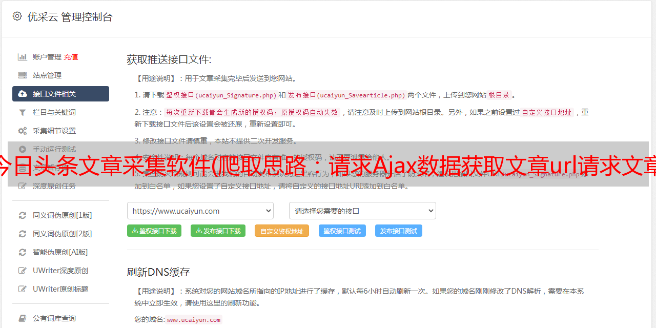 请求ajax数据获取文章url请求文章网页正则提取文章主体内容保存文章数据循环爬取2.代码实现