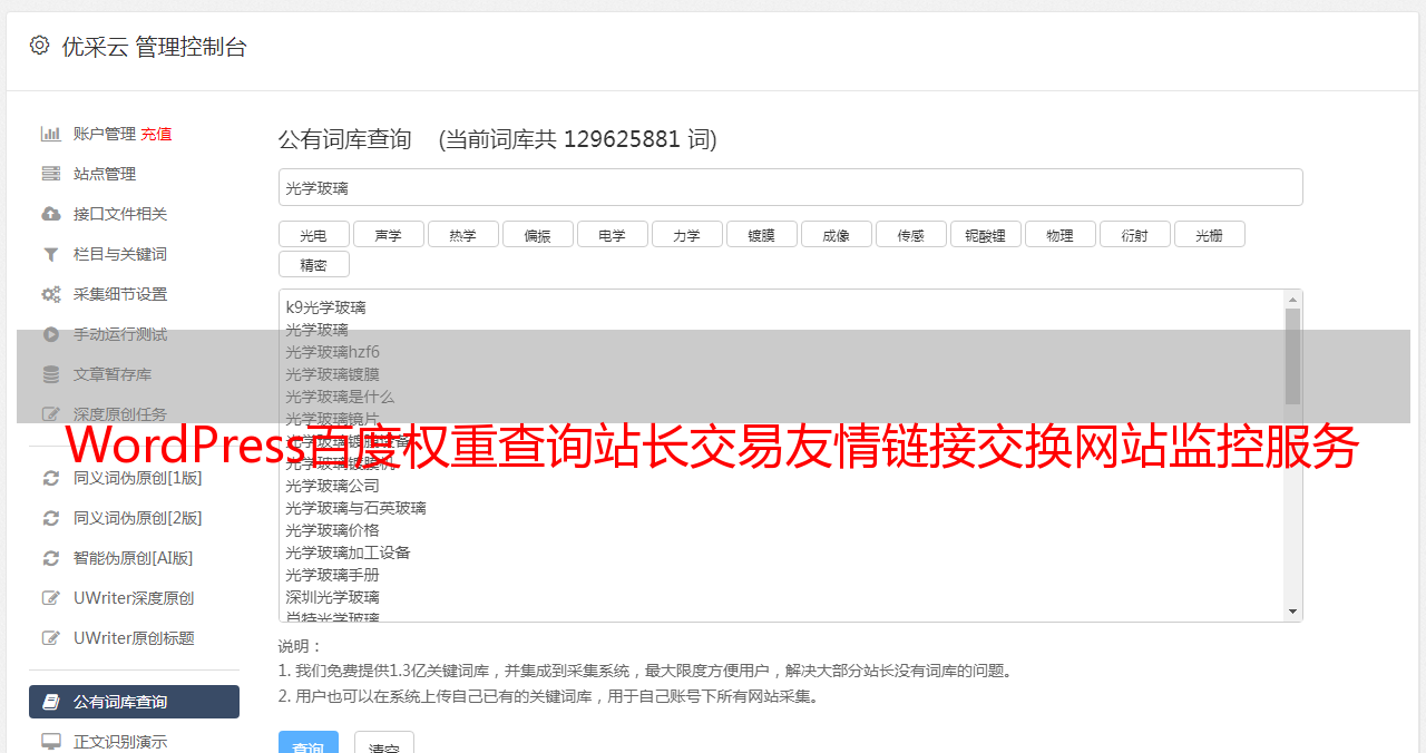 WordPress百度权重查询站长交易友情链接交换网站监控服务器监控
