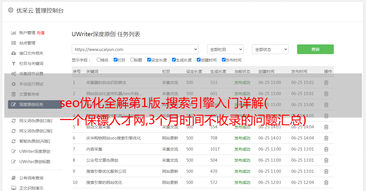 据他介绍,标准每天更新原创文章,质量不高不高,但文章一直在更新。连同其他职位发布和人才简历页面,收录 应该会很快上线。