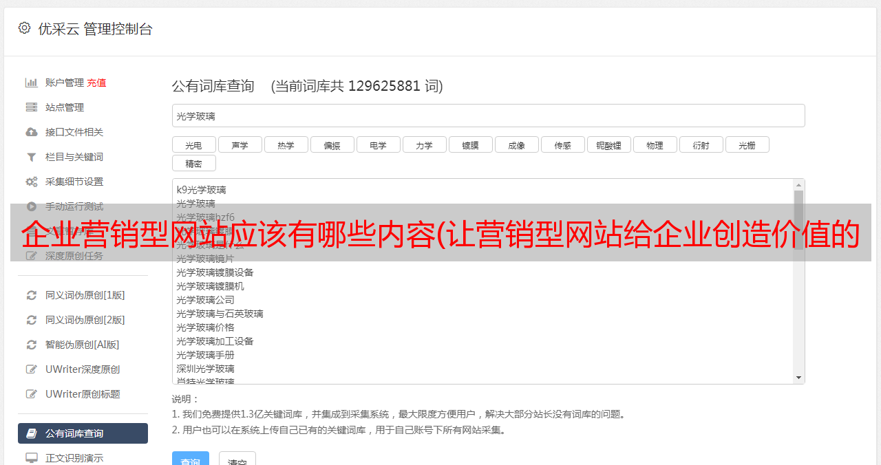 优采云 发布时间: 2022-01-10 10:18企业营销型网站应该有哪些内容(让营销型网站给企业创造价值的几个要点)