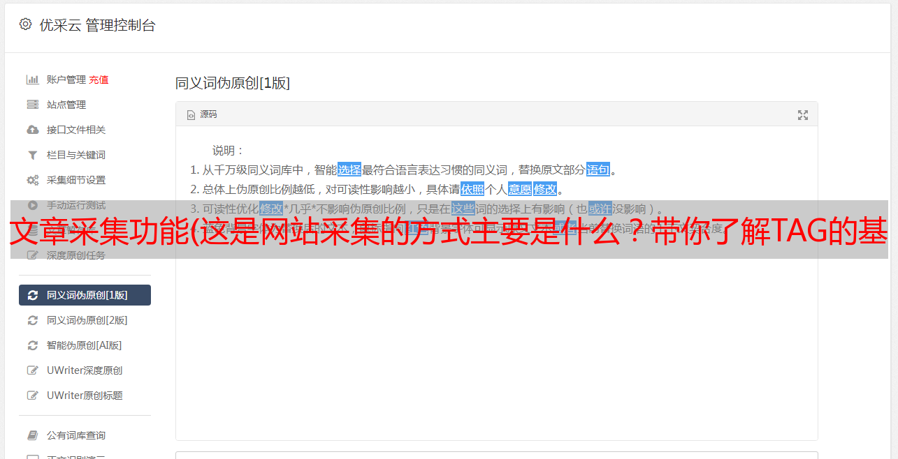 优采云 发布时间: 2022-01-10 17:11文章采集功能(这是网站采集的方式主要是什么?带你了解TAG的基本介绍