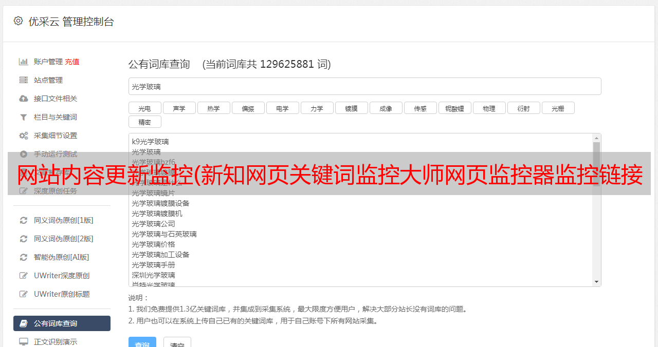 优采云 发布时间: 2022-01-10 22:21网站内容更新监控(新知网页关键词监控大师网页*敏*感*词*监控链接支持用户一键删除)