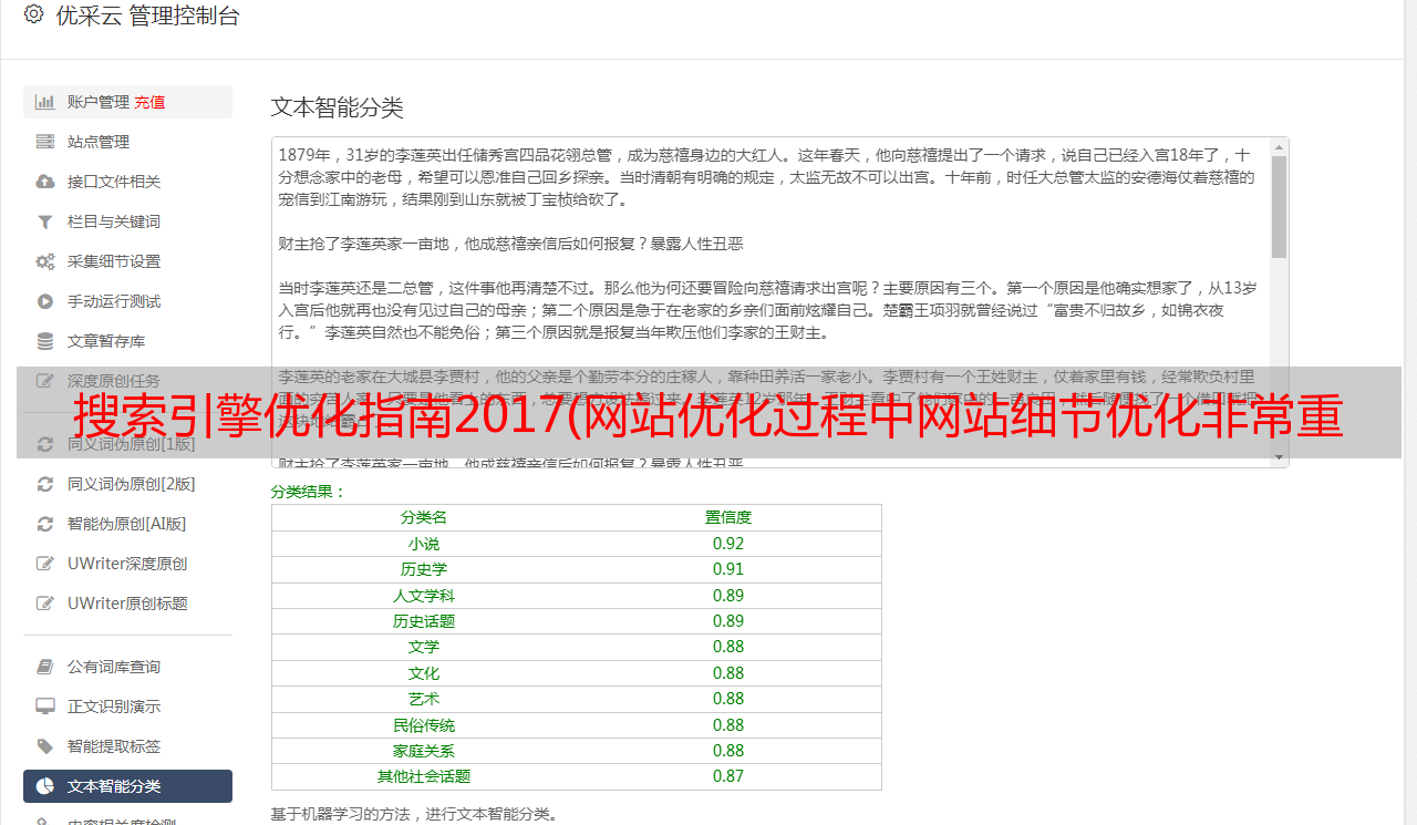优采云 发布时间: 2022-01-11 00:02搜索引擎优化指南2017(网站优化过程中网站细节优化非常重要,应该通过哪些细节去分析和提升网站质量度)