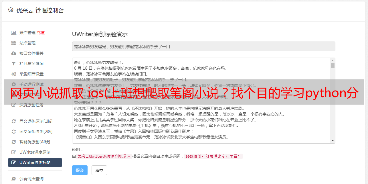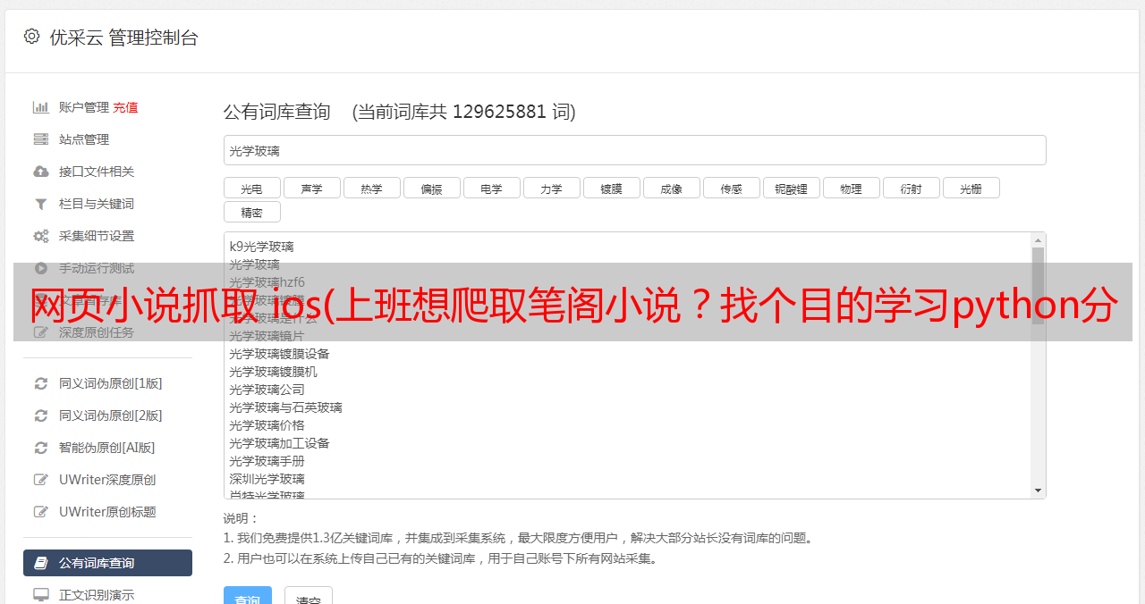 优采云 发布时间: 2022-01-11 01:08网页小说抓取 ios(上班想爬取笔阁小说?找个目的学习python分享)