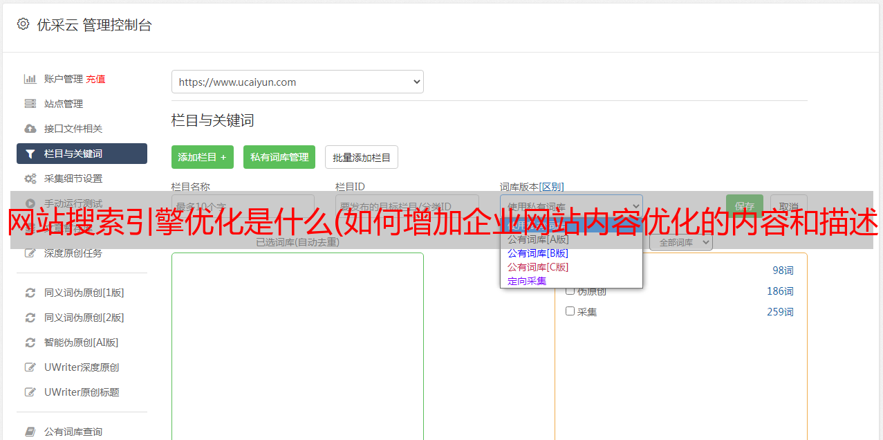 优采云 发布时间: 2022-01-11 02:17网站搜索引擎优化是什么(如何增加企业网站内容优化的内容和描述都应该不一样