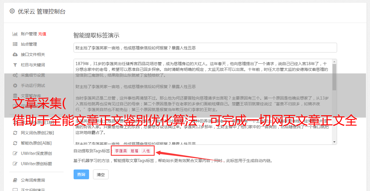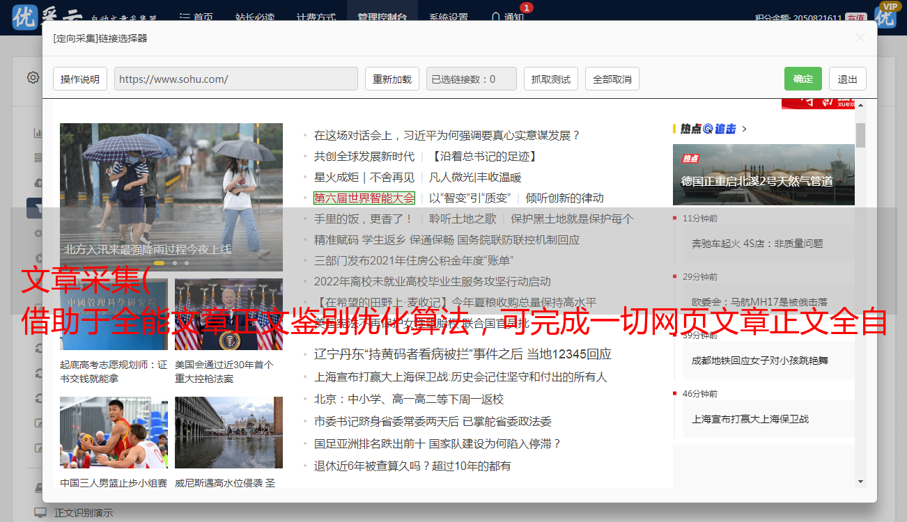 借助于全能文章正文鉴别优化算法,可完成一切网页文章正文全自动)