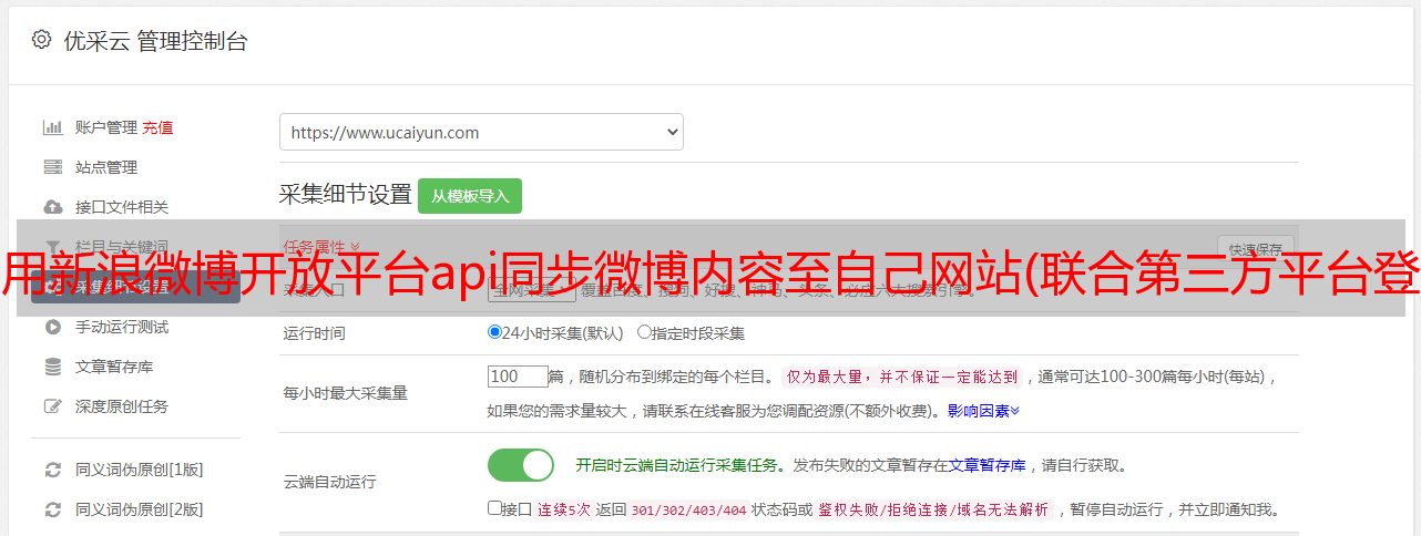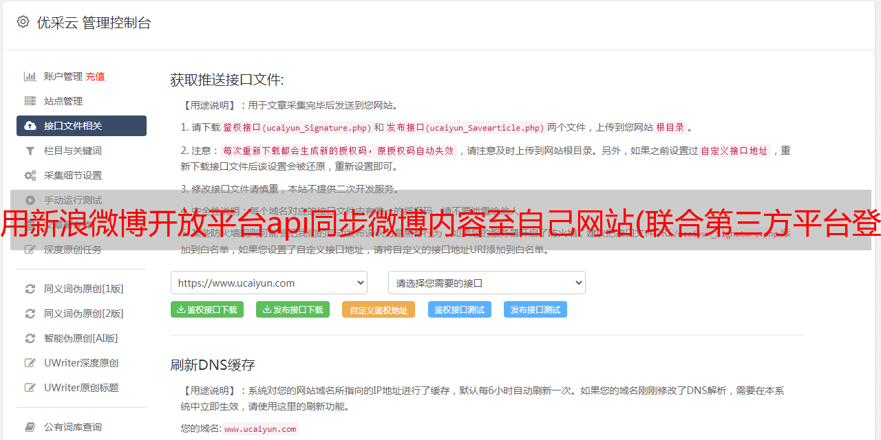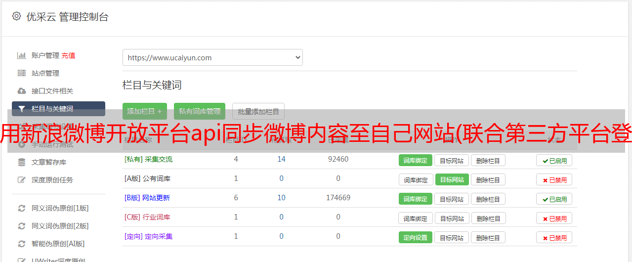 优采云 发布时间: 2022-01-11 07:00使用新浪微博开放平台api同步微博内容至自己网站(联合第三方平台登录接入,初次接触开放平台和AppSecret5
