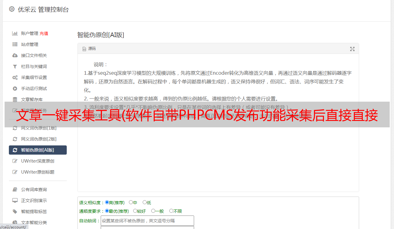 文章一键采集工具(软件自带PHPCMS发布功能采集后直接直接发布到网站上)