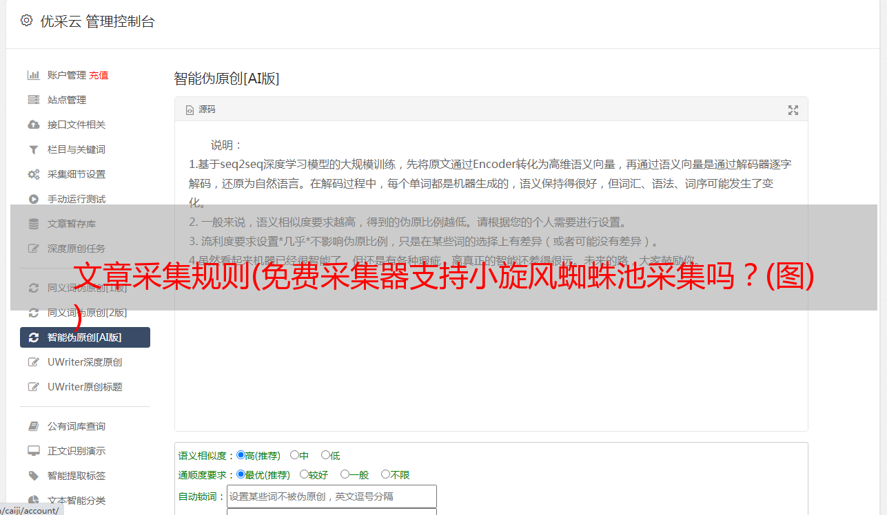 4、通过采集器直接发布到小旋风蜘蛛池站点,设置每日发布总量、是否发布伪原创、发布网址等。同时还支持主要的 伪原创 @cms 和 站群。还配备了站长定时发帖功能(设置定时发帖文章,让搜索引擎定时抓取你的网页,从而提高网站的收录。)