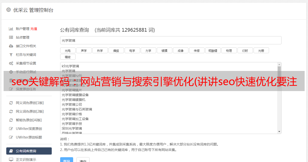 4、虽然通过以上步骤可以实现百度SEO优化,但最重要的是提升关键词的搜索排名。因为,面对网上海量的数据,所有的朋友都用关键词来搜索自己想要的东西。所以百度SEO优化主要需要优化关键词,这样才能带动用户的点击。业务发展。优秀的排名。但是,如果你是一个刚刚上线的新站点,你必须在保持对合规则的同时增加对合进度。小红书笔记的曝光一般基于三个逻辑:关注推荐搜索,推荐和搜索曝光都离不开关键词。系统提取笔记关键词 根据已发布笔记的内容,将其推荐给可能感兴趣的用户;在用户通过搜索关键词搜索相关笔记的同时,笔记在搜索结果中的排名是重要的流量来源。优化关键词可以帮助notes走红,所以品牌和网红在推广的时候一定要慎重考虑notes关键词的选择和布局。标题:标题的优化方法主要取决于店铺在行业中的竞争优势。不同的标题优化需要在不同的周期内进行。结合后台数据,逐步替换关键词的过程,京东搜索标题计算分数的方法,标题越短权重越高,标题长是降低重量。频繁更改标题,相当于让搜索引擎重新计算产品标签,对搜索流量的影响更大。.