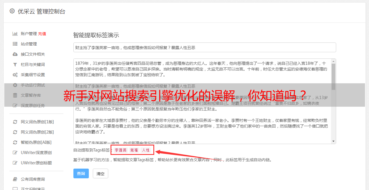 优采云 发布时间: 2021-04-24 22:13新手对网站搜索引擎优化的误解,你知道吗?
