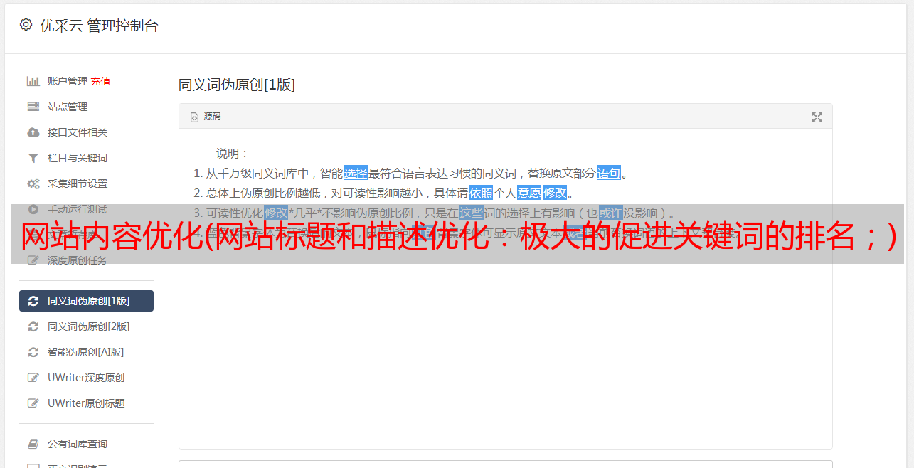 优采云 发布时间: 2022-01-11 22:02网站内容优化(网站标题和描述优化:极大的促进关键词的排名;)