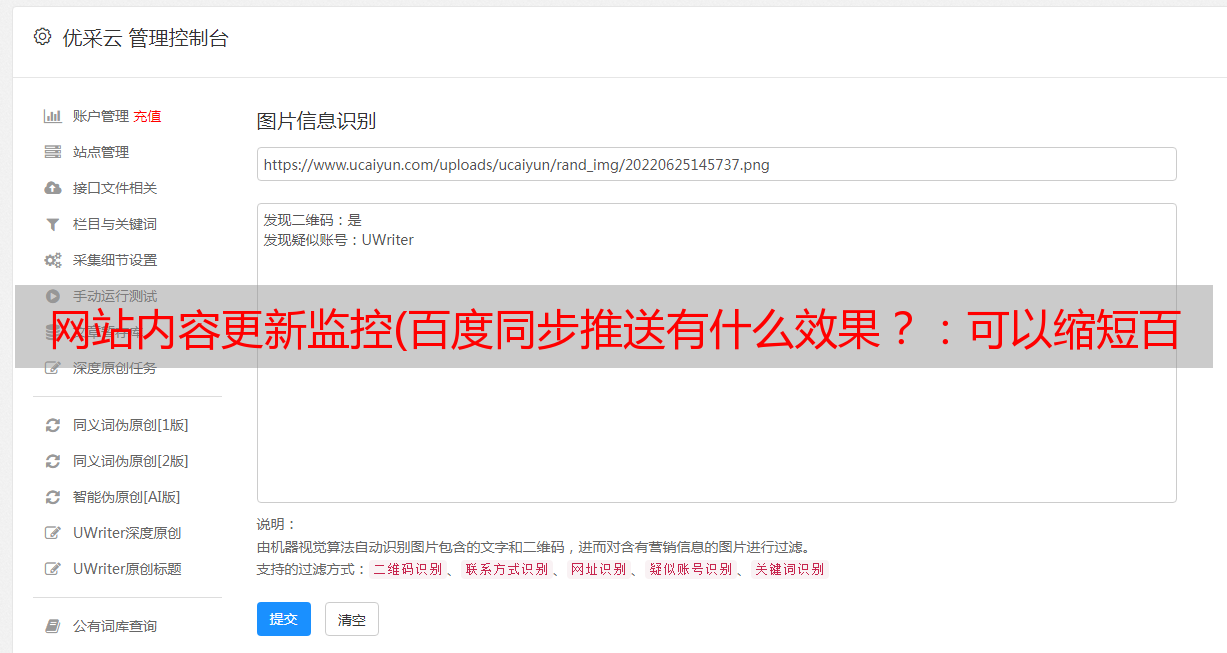 优采云 发布时间: 2022-01-11 22:12网站内容更新监控(百度同步推送有什么效果?:可以缩短百度爬虫发现您站点新链接)