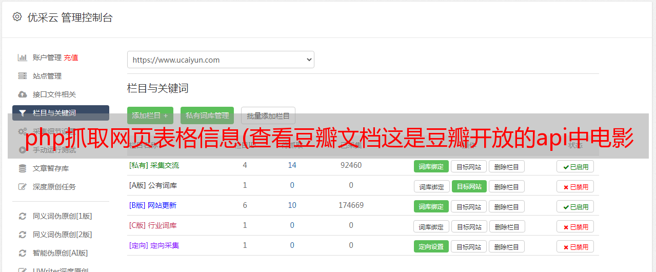 优采云 发布时间: 2022-01-11 23:21php抓取网页表格信息(查看豆瓣文档这是豆瓣开放的api中电影部分的文档返回数据)