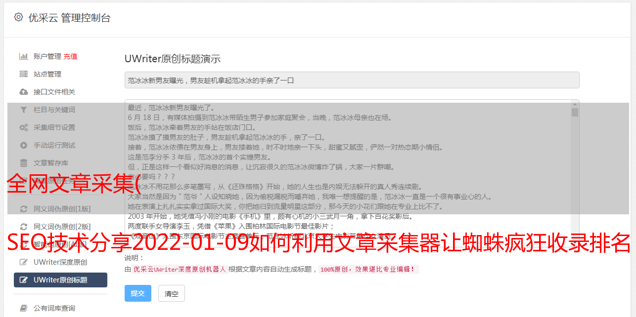 SEO技术分享2022-01-09如何利用文章采集器让蜘蛛疯狂收录排名?