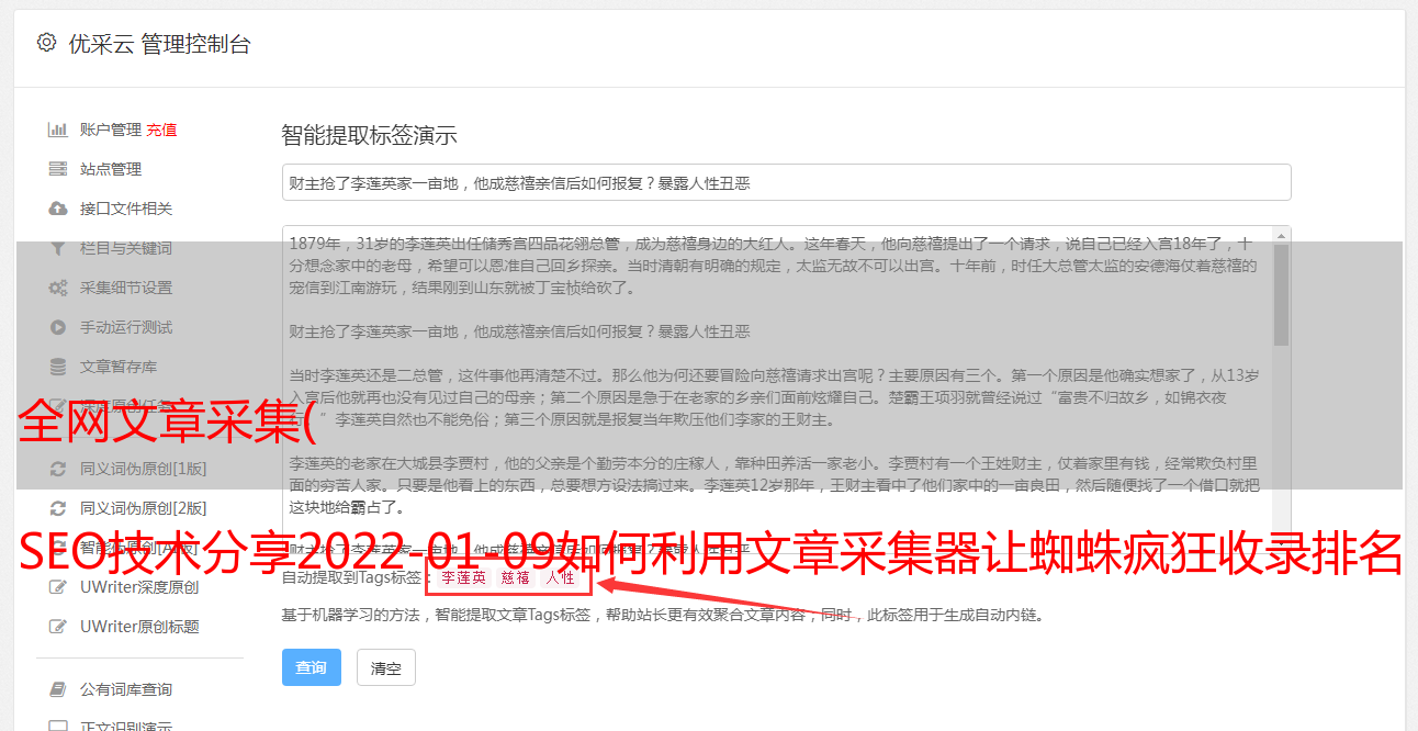 全网文章采集( SEO技术分享2022-01-09如何利用文章采集器让蜘蛛疯狂收录排名? )