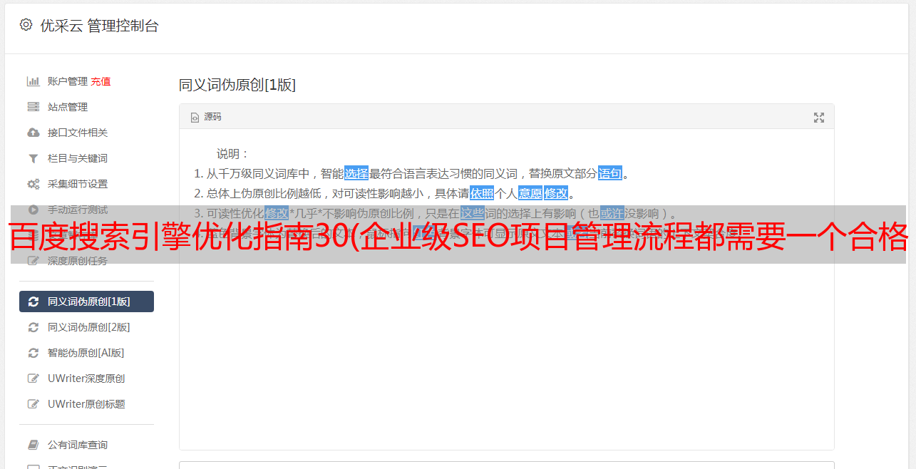 优采云 发布时间: 2022-01-12 00:20百度搜索引擎优化指南30(企业级SEO项目管理流程都需要一个合格的SEO团队,你知道吗?