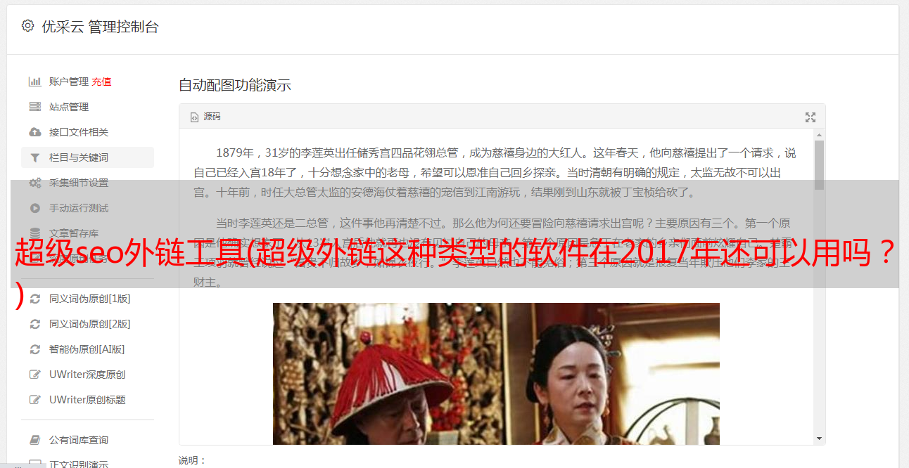 优采云 发布时间: 2022-01-12 02:07超级seo外链工具(超级外链这种类型的软件在2017年还可以用吗?