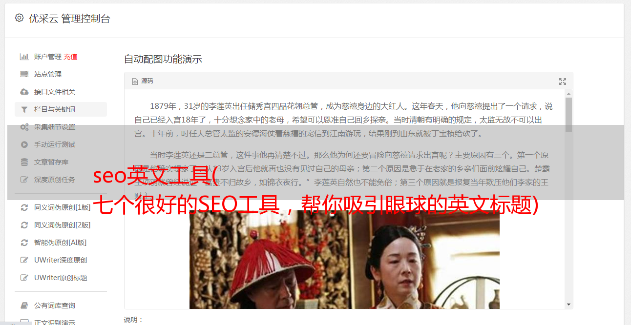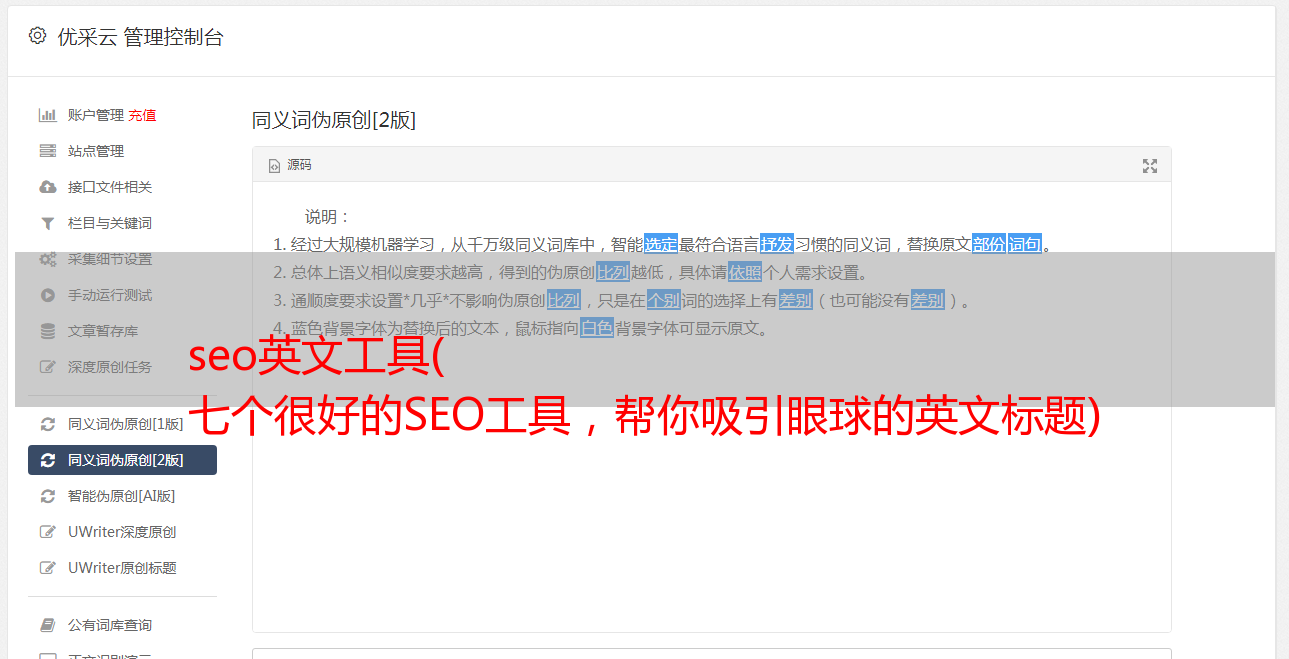 优采云 发布时间: 2022-01-12 02:15seo英文工具(