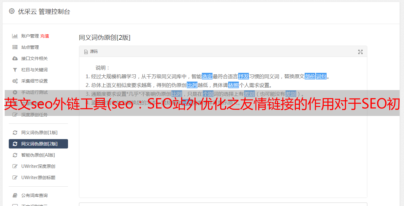 优采云 发布时间: 2022-01-12 02:15英文seo外链工具(seo:SEO站外优化之友情链接的作用对于SEO初学者了