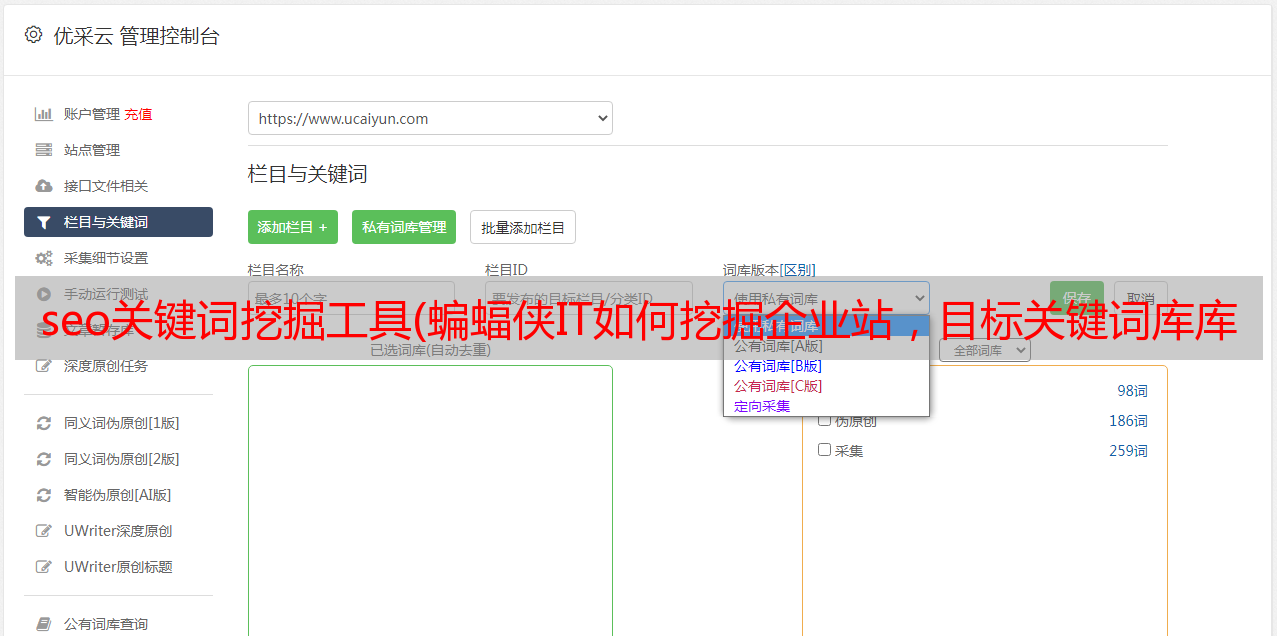 优采云 发布时间: 2022-01-12 04:08seo关键词挖掘工具(蝙蝠侠IT如何挖掘企业站,目标关键词库库?)