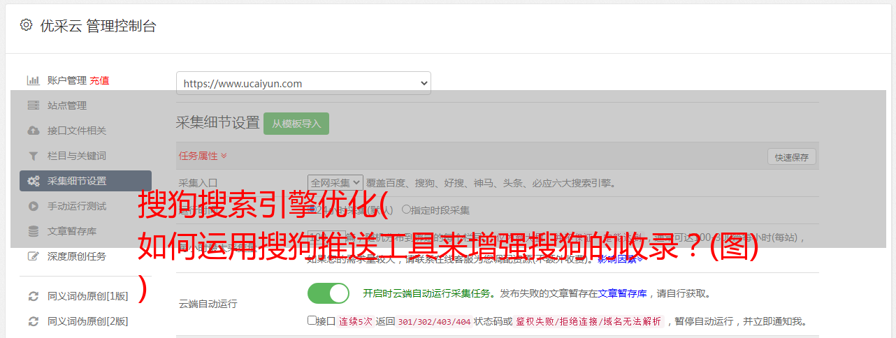 今天要跟大家说两点,一是搜狗的推送工具,二是搜狗官方的收录规则。先说第一点,搜狗推送工具的作用和使用。首先是工具特点:操作简单,可以一直自动推送,无需VPS(市场VPS每月至少100个),无需编码(软件自动识别验证码,而市场上其他同类平台需要接入编码平台,按次数计费:费用约为20元/1W次/天,推的越多,每月的费用越高),只需要一个搜狗账号。而且操作完全是傻瓜式的操作,输入账号导入链接,开始自动批量推送,可以随时挂机推送,并解决每天繁琐的推送任务。效果非常明显。首先,它可以突破单个站点每天200次推送的限制。小编日推数千万。主动向搜狗搜索推送资源,缩短爬虫发现的链接网站可以说已经做到了极致。