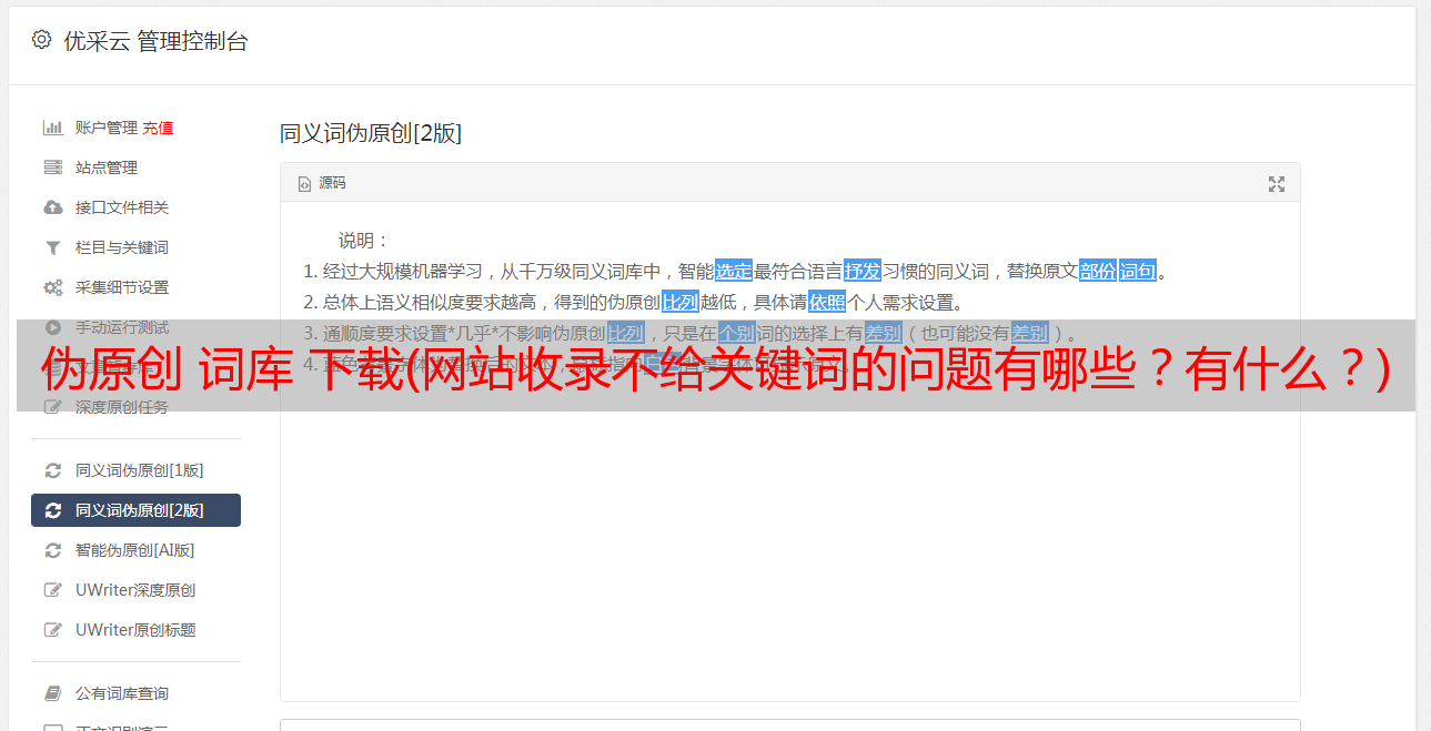 伪原创 词库 下载(网站收录不给关键词的问题有哪些?有什么?)