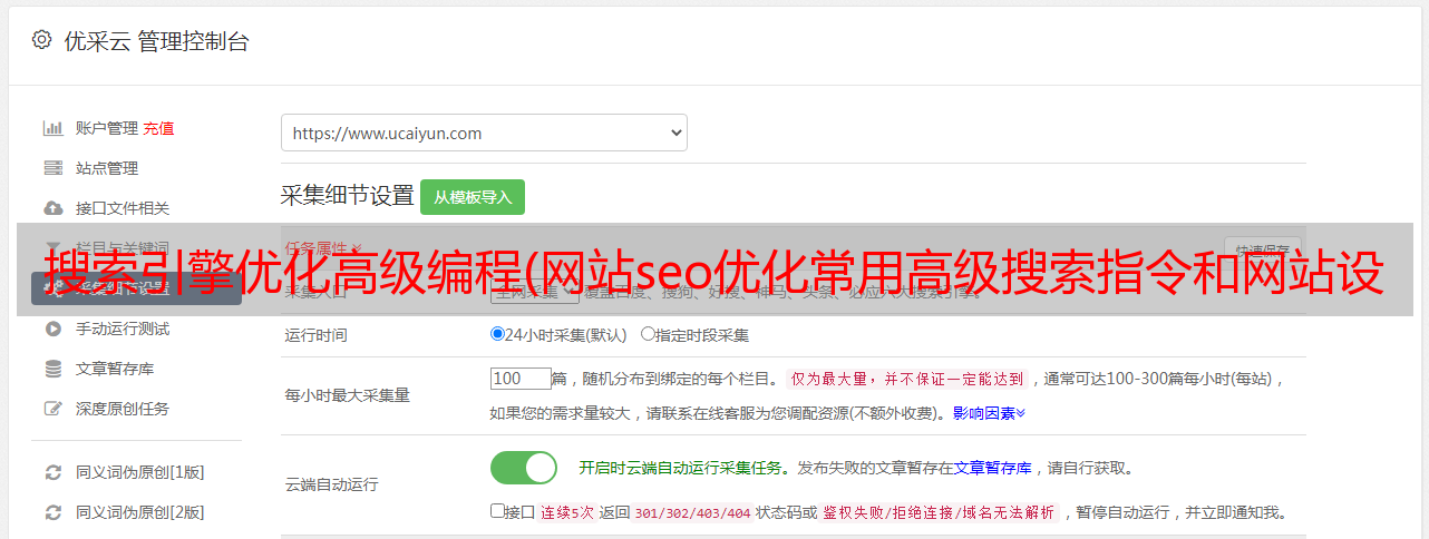 优采云 发布时间: 2022-01-12 08:08搜索引擎优化高级编程(网站seo优化常用高级搜索指令和网站设计之整站优化)