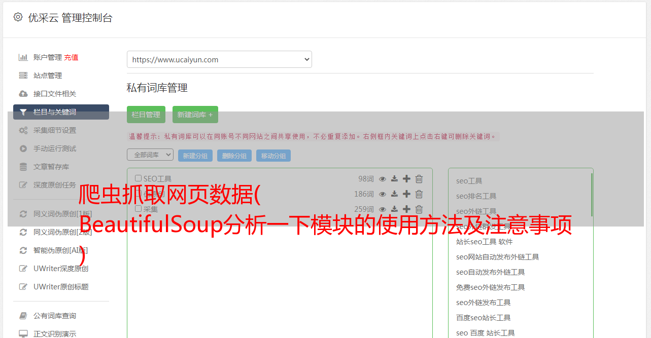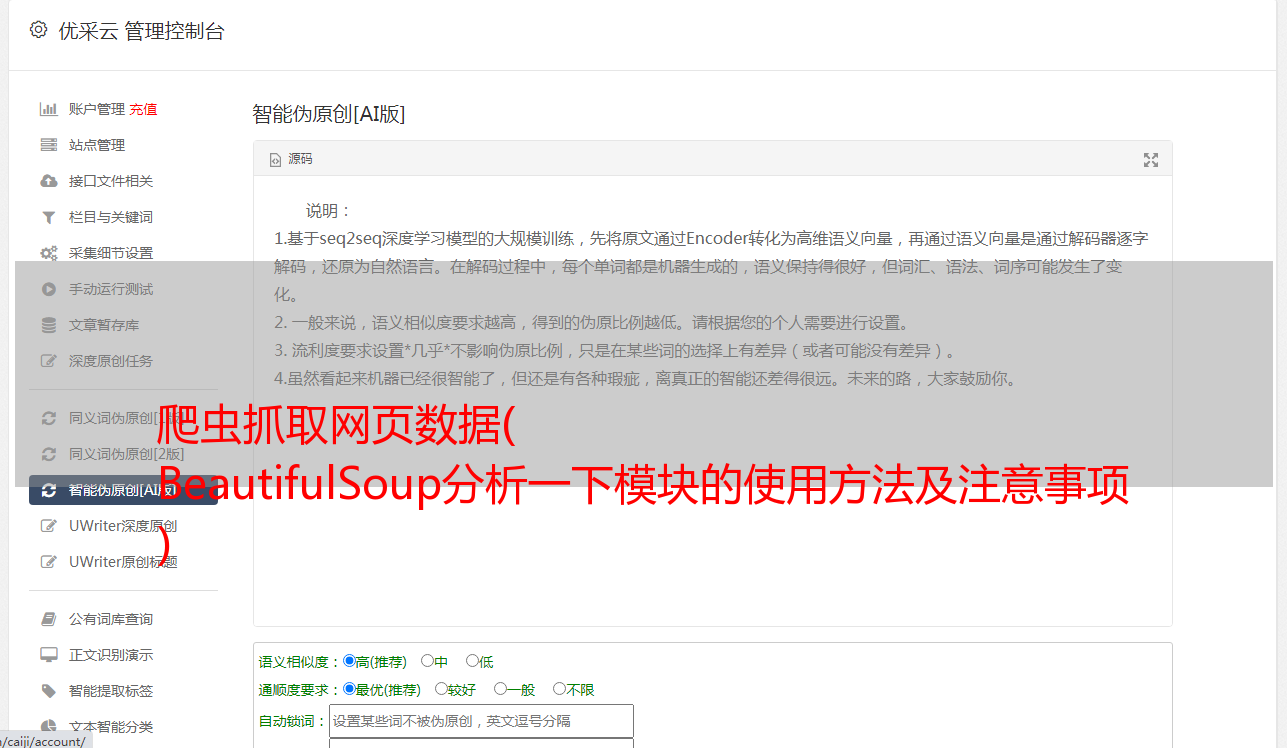 爬虫抓取网页数据( BeautifulSoup分析一下模块的使用方法及注意事项 )