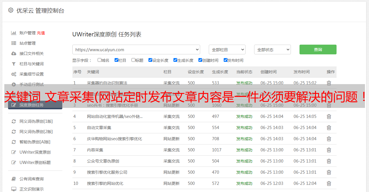 优采云 发布时间: 2022-01-12 11:19关键词 文章采集(网站定时发布文章内容是一件必须要解决的问题!!