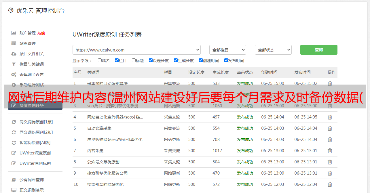 优采云 发布时间: 2022-01-12 12:13网站后期维护内容(温州网站建设好后要每个月需求及时备份数据(图))