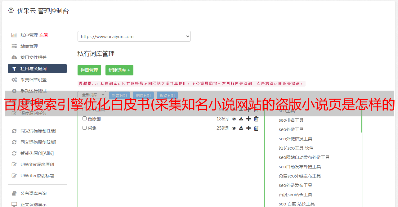 优采云 发布时间: 2022-01-12 13:12百度搜索引擎优化白皮书(采集知名小说网站的盗版小说页是怎样的?(图))