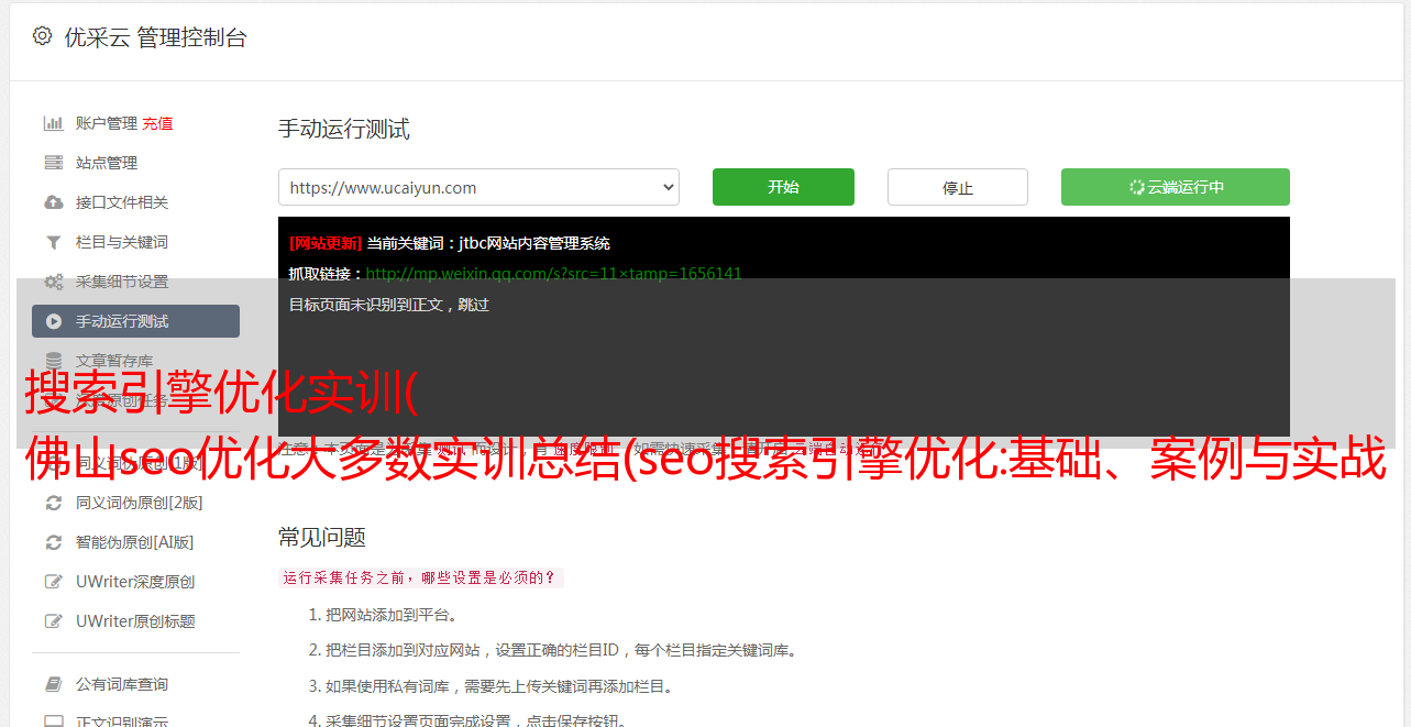 优采云 发布时间: 2022-01-12 13:16搜索引擎优化实训(
