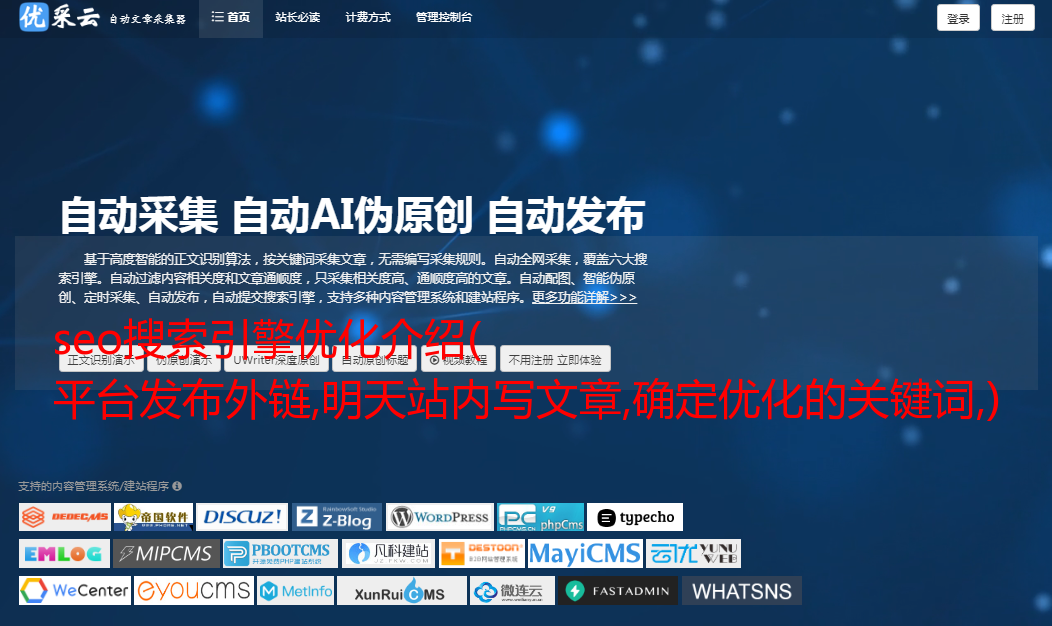 seo搜索引擎优化介绍( 平台发布外链,明天站内写文章,确定优化的关键词,)