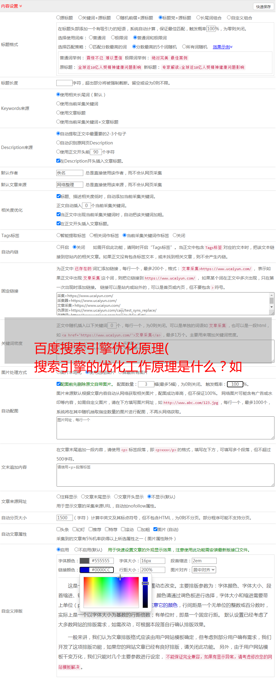 搜索引擎的采集工作也是按照一定的规则进行的,基本上可以分为批量采集和增量采集两个特点。批量采集:就是把网上所有的网页只要有链接就采集起来,需要几周的时间。增量采集:是批量采集的技术升级,完美弥补了批量采集的不足。它在原来的基础上采集新添加的网站页面,改变自上次采集以来改变的页面,并删除重复的集合。和不存在的页面。