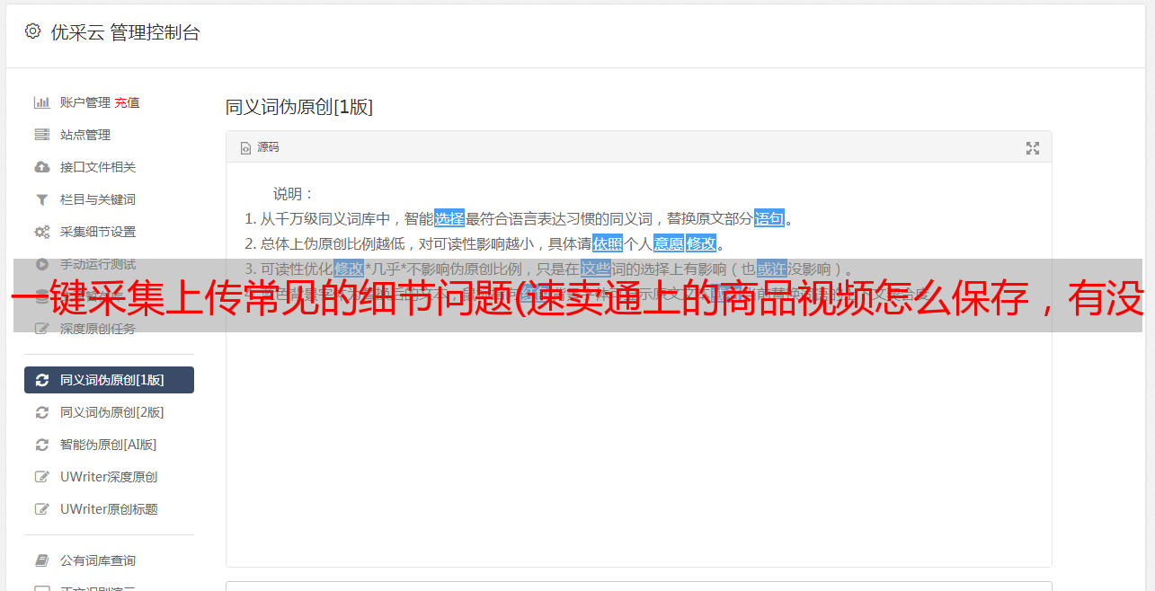 优采云 发布时间: 2022-01-12 18:04一键采集上传常见的细节问题(速卖通上的商品视频怎么保存,有没有什么工具可以实现批量保存